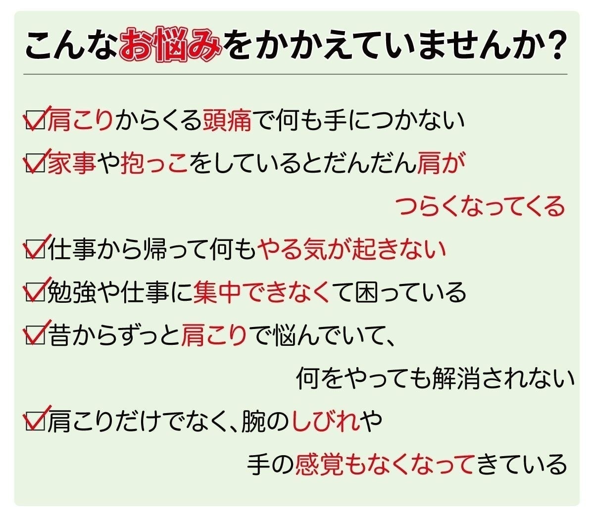 肩こりのお悩みなら郡山よつば鍼灸整体院