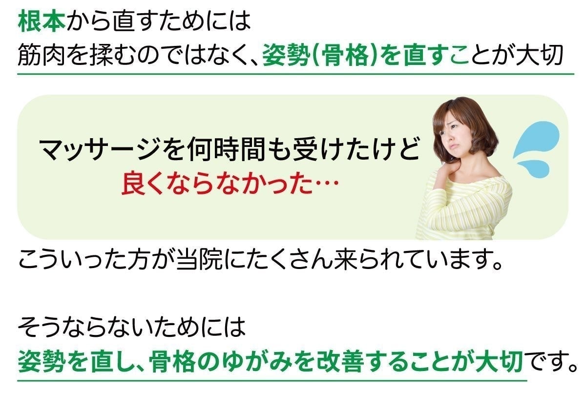 しかし、マッサージをたくさん受けているのにもかかわらず、全く改善する気配のない方には姿勢を正すことが大切です。