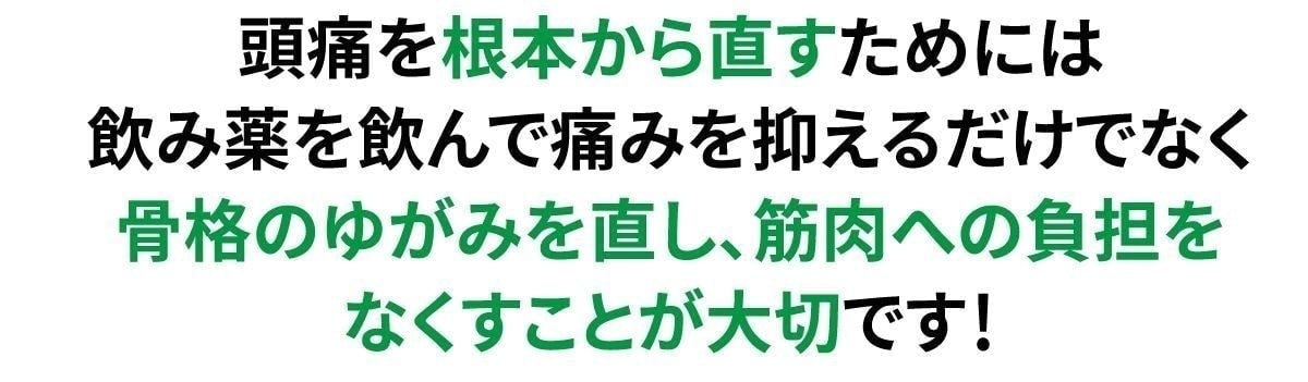 しかし、そういったタイプの頭痛はまれで多くの人が日常的に悩んでいるものは、からだの凝りや骨格のずれを原因としているものだという可能性が高いでしょう。